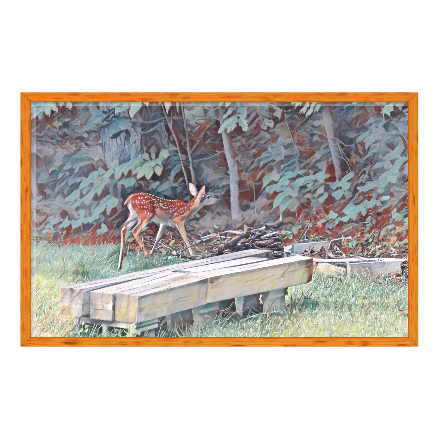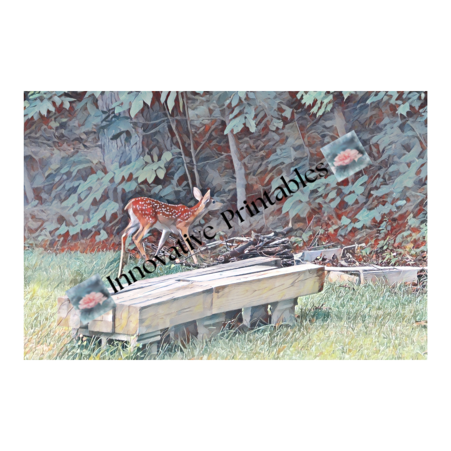 This curious fawn wanders close to the forest edge in this printable art piece. Enjoy the peaceful fawn as it wanders close to its mama. This printable piece comes in five aspect ratios, choose the size that works for you. Add this serene print to your rustic home décor and enjoy the serene feeling anytime.